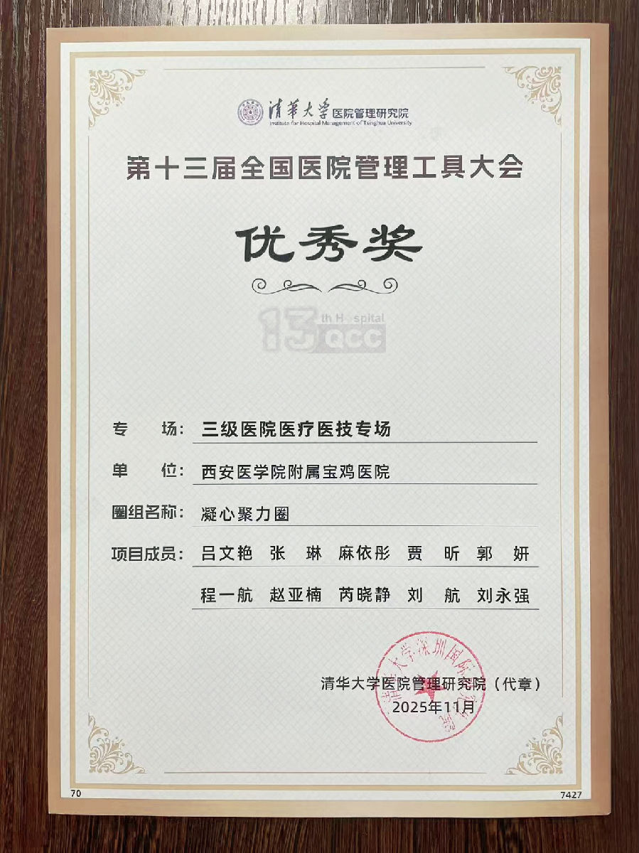 在医院的鼎力支持下,由评建办公室牵头主导、统筹施策,各参赛科室紧密联动、医护高效协同,最终斩获多项荣誉,标志着医院在医疗质量管理创新领域再获行业肯定。下一步,我院将持续推进质量管理工具的深入应用与创新实践,将竞赛经验转化为常态化工作机制,聚焦临床服务中的重点与难点,不断提升医疗质量与安全水平,以管理创新驱动医院高质量发展,让优质医疗服务更好地惠及广大患者。