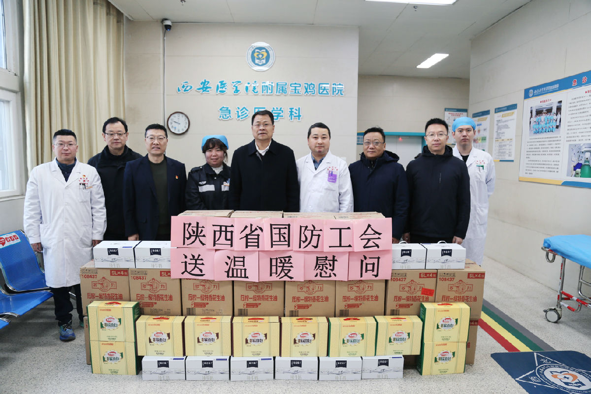 1月16日,陕西省总工会副主席、国防工会主席马宏伟、综合部部长张鹏、权益保障部部长雷海龙一行来我院开展2026年“送温暖”走访慰问活动,向辛勤工作在一线的医务工作者表达深切关怀与新春祝福。院党委书记李斌,党委副书记、工会主席张峰陪同慰问。