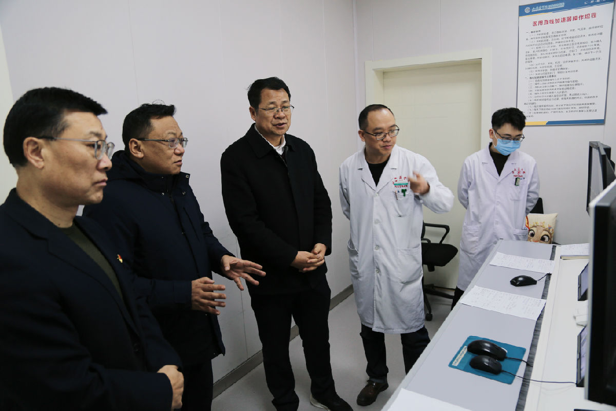 马宏伟主席一行首先来到急诊医学科,向长期奋战在急救前沿、守护生命通道的医护人员致以亲切的问候,他对大家在急难险重任务面前展现出的敬业精神和专业素养给予高度评价,望大家在全力救治患者的同时,也要注意劳逸结合。随后,一行人前往医院放疗中心、普外科一病区等临床科室进行实地调研,查看了先进的医疗设备,细致了解了特色诊疗技术开展情况,询问学科建设、人才培养及患者服务等方面的具体举措。马宏伟主席对医院在提升医疗技术能力、强化学科内涵建设、优化诊疗服务流程等方面取得的成效表示充分肯定。他指出,医院在服务广大人民群众健康的同时,也为国防军工系统职工及家属提供了优质、可靠的医疗保障,体现了高度的社会责任感与担当精神。