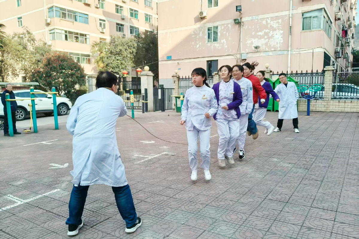 健身活动依然是快乐节日的主旋律,3月6日下午,院工会组织了由29个分工会共200余人次参加的集体跳大绳活动。女职工们步调一致、齐心协力、精神抖擞,一根跳绳不仅连接的是团结与友爱、传递着勇气与力量,更演绎着奋斗与拼搏。大家喜笑颜开、兴高采烈,时而为同事们加油喝彩,时而为同伴们的胜利欢呼雀跃,时而为自己的失误掩面大笑。活动现场处处洋溢着浓浓的节日气氛,呈现出一派喜庆、欢畅的热闹景象。