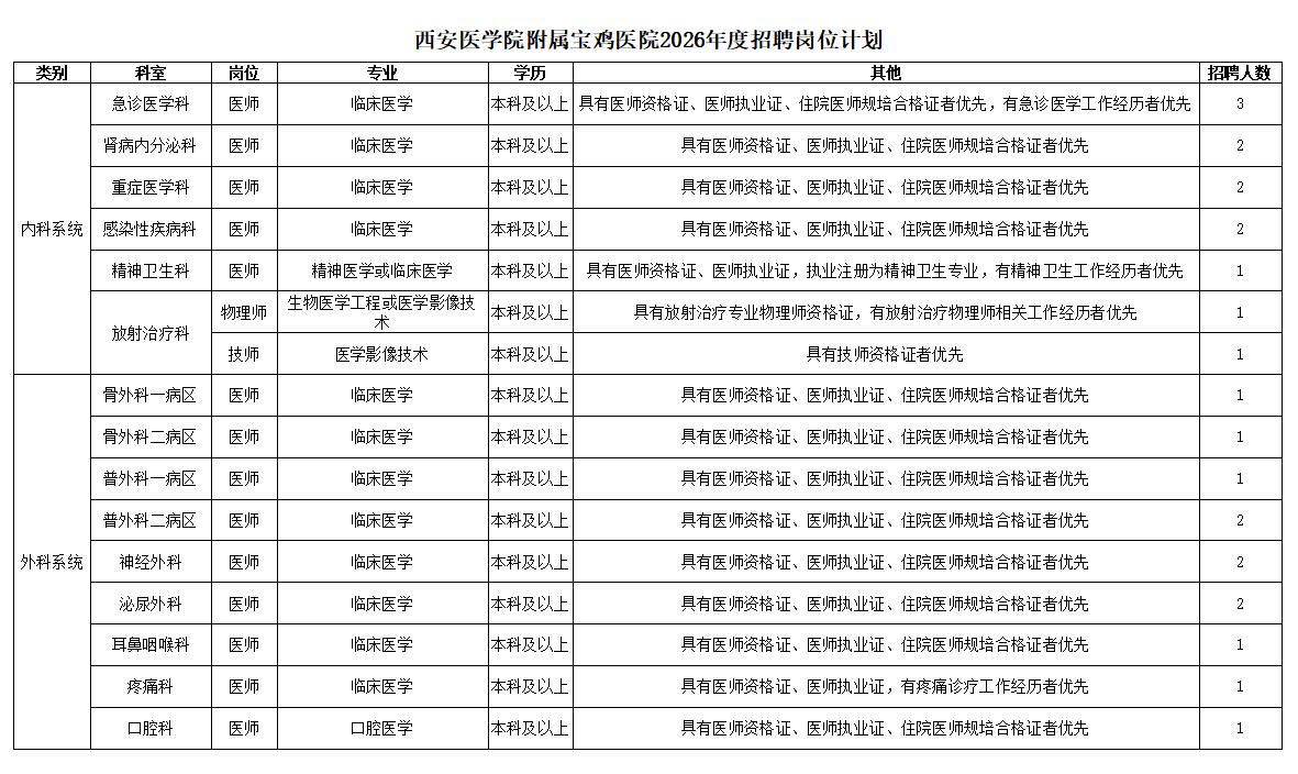 对拟聘用人员进行健康体检,地点安排在西安医学院附属宝鸡医院进行,体检费用本人自理。